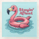 This charming design features a pink flamingo pool float bobbing in bright blue water with the phrase “Stayin’ Afloat” in bold, playful lettering. With its retro summer vibe and pastel aesthetic, this illustration blends humour and nostalgia, perfect for capturing lighthearted energy and poolside fun. The wide-eyed flamingo radiates charm and adds a quirky twist to classic summer iconography. Whether you’re drawn to cute animal art, vintage colour palettes, or sunny, playful themes, this artwork offers a cheerful and laid-back mood that fits right in with the trending Y2K and beachcore aesthetics. Ideal for anyone who appreciates a humourous take on staying positive and buoyant, this design brings a smile to any day. AI generated artwork.