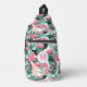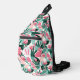 This stylish sling bag features an all-over pattern of retro flamingos and greenery and your monogram initial on the front. Three zippered compartments can easily store your keys, wallet, phone, camera, and plenty more. Wear it as a crossbody or over one shoulder, and attach the adjustable strap to a durable D-ring on the side of your choice. Made of polyester poplin, the bag is fully lined and measures 13.5" x 9". Exterior front pocket is 6.5" deep x 5.5" wide, interior zippered pocket is 4.5" x 4.5" with a compartment organizer, back zipper pocket is 6" wide x 5.5" deep". Comes with a rugged adjustable 27"-38" waist/crossbody strap with a plastic swivel connector. (Spot clean/dry clean only.) Create for yourself or give as a gift. MATCHING items in our travel collection.