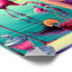 Retro-style illustration featuring a young woman daydreaming. She is smiling with her hand resting under her chin. Surrounding her are various flamingos, a colorful sunset and pink drinks. The vivid colors, bold energy, and vintage theme pay tribute to the thrilling imagination of midcentury book covers and movie posters.