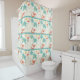 Shower Curtain - Vintage-inspired poolside scene with pink flamingos, lounge chairs, cocktails, and sunny vibes in a retro summer aesthetic. Ideal for beach lovers, vacation fans, and those who enjoy fun, nostalgic designs.