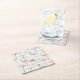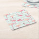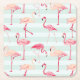 Retro Flamingos On Mint Stripes Square Paper Coaster