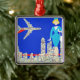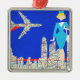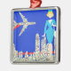 When you see this Retro Flight Attendant Christmas Ornament, it will be love at first flight! The design features a royal blue background with a city skyline and airplane made from a vintage roadmap. There is also a minimalist cartoon drawing of a 1960's flight attendant, complete with an aqua uniform and pillbox hat. This is a perfect gift for flight attendants, frequent flyers and anyone who loves vintage glamour.
