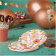Retro inspired groovy birthday plates with 70's style flowers and boho colours..