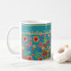 A chic Coffee Mug to personalize, with two pretty floral mini-print patterns on a teal background. Part of the Posh & Painterly 'Granny Print' collection, this design can easily be adjusted to fit any Mug.