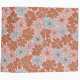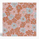 Playful seamless retro floral pattern featuring bold flowers in shades of orange, peach, and blue on a light pink background, perfect for vintage-inspired designs.