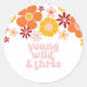 Retro Floral Young Wild Three birthday Classic Round Sticker