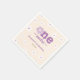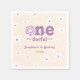 Cute girl 1st year birthday paper napkin features a purple bold typography text "onederful" in the middle and surrounded by retro groovy flowers.