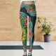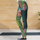 A unique pair of workout leggings or yoga pants for women featuring retro floral mandalas on dark green colour.