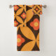 This is cute little retro red flowers placed between mid century modern amber yellow circles on black background