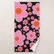 Retro Flower Pattern Black Pink And Orange Bath Towel Set