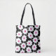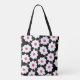 Retro Flower Pattern in White on Black Tote Bag
