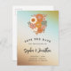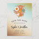 Retro Flower Power QR Code Terracotta Aqua Gradient Wedding Save the Date... Our terracotta and aqua gradient wedding Save the Date features a "flower power" style bouquet reminiscent of the 1960s hippie era drawing attention to your wedding information text below. The back of the card contains your return address, wedding website URL, and an example QR code graphic template you can replace easily with your own wedding website QR code - right on the personalization template. All example text on both sides of the card can be easily revised with your own details on the personalization template.