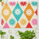 This is cute retro flowers pattern placed on colourful geometric harlequin diamonds in orange, pink, red, teal, and tangerine.