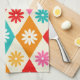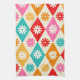 Retro Flowers on Mid Century Diamonds Pattern Kitchen Towel