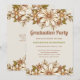 This trendy graduation party invitation for the class of 2024 features stylish retro flowers and leaves in vintage neutral colours like brown, beige, gold, olive green, and ivory cream with retro style text. The back of the card has a spot for a scannable QR code so guests can easily rsvp to the grad. The perfect way to invite friends and family to celebrate the graduate!