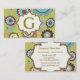 Cute retro flowers turquoise blue brown floral pattern custom monogram business cards, featuring a lovely pattern of abstract flowers in turquoise blue with brown outline on olive green background and your monogram in an ivory frame. Change text to personalize it and add your name or your company. A feminine, girly, floral design with a vintage feel to it.