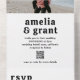 Modern style all in one wedding invitations featuring a simple and minimal layout with your names in a groovy retro font. Below are your event details in a sans serif font along with your QR code (optional) for guests to scan and go directly to your wedding website for additional details. The top section has your favourite photo. Colour scheme is black and white. The QR code may be removed and the fonts / colours may be changed in the design editing tool.