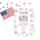A Red White And Blue BBQ invitation featuring retro-inspired typography and fireworks graphics! A fun design for a relaxed backyard cookout Couples Shower, Engagement Party or Rehearsal Dinner Invitation design, particularly suitable for an event around a national holiday eg Independence Day.