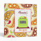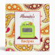 Un classeur comportant une conception d'arrière - plan de rose, de vert, Bourgogne, orange, et diagonale Paisley d'or. L'avant comporte une illustration d'un fourneau vert clair avec un pot orange sur le brûleur plan. Personnalisez avec votre nom.