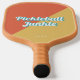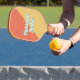 Retro inspired sunburst design in bright and playful vintage colours with the phrase "pickleball junkie" that can be personalized with your name.