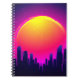Retro Futurism. futuristic synth wave illustration. 80s Retro poster Background with Night City Skyline. Rave party Flyer design in 1980s style.