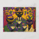 Retro Futuristic Mardi Gras Black Cat Martini Club Postcard