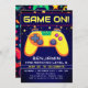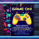 Personnalisez votre propre invitation de fête d'anniversaire sur le thème des joueurs avec ce design coloré et amusant.
