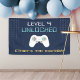 Welcome guests to your child's video game themed birthday party with this cool retro banner featuring a video game controller on a navy blue background with vintage digital style lettering. "Level [age] unlocked" appears at the top, with your child's name and party occasion beneath.
