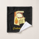 Retro gaming machines in yellow and orange colour pallete. Pinball and arcade machines. Custom text on all three towels. Seamless pattern on bath towel..