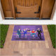 This Retro Gay Bar Door Mat design is purple, kitschy, and utterly fabulous! Sitting on mid century modern barstools, drinking their fun, pink beverages, these dapper gentlemen are having a gay ol’ time. The hunky bartender with a pink bowtie is already pouring the next round. The silhouettes of atomic liquor bottles line the wall and the vintage 1960’s sputnik style light fixture hangs off to the side. The only thing straight about this bar is the bar!