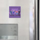 This Retro Gay Bar Magnet design is purple, kitschy, and utterly fabulous! Sitting on mid century modern barstools, drinking their fun, pink beverages, these dapper gentlemen are having a gay ol’ time. The hunky bartender with a pink bowtie is already pouring the next round. The silhouettes of atomic liquor bottles line the wall and the vintage 1960’s sputnik style light fixture hangs off to the side. The only thing straight about this bar is the bar!