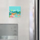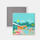Ce Retro Gay Pool Party Magnet Carré dispose de quatre beefcakes huppés qui ont une vieille époque gay en battant la chaleur de Palm Springs en se prélassant autour de l'eau bleu turquoise de leur piscine atomique en forme de boomerang. L'architecture moderne du milieu du siècle sur la fabuleuse maison en pierre orange est clairement une propriété de premier choix, vu la vue sur les montagnes de l'arrière - plan. Un soleil d'étoile jaune brille dans le ciel turquoise pour que vous puissiez voir tous les détails charmants, depuis les flamants roses kitsch jusqu'à la clôture rayée des blocs bruns des années 50. Et bien sûr ce que Palm Springs House serait complet sans palmier ?