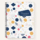 This Memphis-inspired geometric abstract design brings a modern twist to mid-century style with it's playful shapes and bold palette of navy blue, golden yellow, and deep rose pink on a crisp white background. The dynamic composition captures the essence of mid-century modern patterns. Perfect for back-to-school, collecting family recipes or even artist portfolio, this versatile notebook design can be easily personalized to suit your unique style using the supplied template. Try out Zazzle's handy transfer option or search ID1067 to see additional patterns and products in this design set. Note: pattern adapted from generative content.