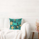 Retro Geometric Art Teal Gold Throw Pillow