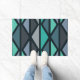 Retro Geometric Art Triangles Black Teal Doormat