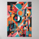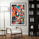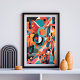 This dynamic abstract artwork bursts with energy, featuring layered geometric shapes in bold hues of orange, teal, coral, and black. With retro flair and futuristic edge, this design creates a visual rhythm perfect for modern, eclectic, or creative spaces.
