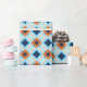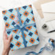 Diamonds and other geometric shapes in black, shades of blue, orange, and tan on a light blue background give this wrapping paper a retro vibe. has a masculine look, and is perfect for Father's Day or all-occasion gifts for him.