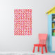 A colourful retro geometric leaf/flower pattern in orange, coral and pink on a white background.
