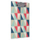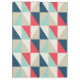 Very trendy geometric pattern with blue, red and beige triangles.