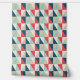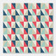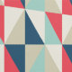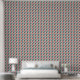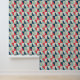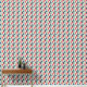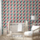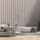Trendy peel and stick wallpaper featuring a geometric pattern of blue, red, and beige triangles, offering a stylish retro vibe for modern spaces