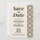Announce your big day with a bold and comfortable design. This card features a unique geometric pattern and a central monogram that sets the tone for your "modern vintage" wedding.