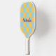 You'll be courting success with this bright and colourful pickleball paddle. Elevate your game and enjoy the boost of bright sunshine yellow and sky blue, which form a checked pattern of squares for a fresh retro effect. The reverse side of the paddle is plain yellow. Personalize this cute and fun design with a name, which will appear in script typography across the pattern. An ideal custom gift for pickleball players.