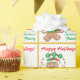 This festive Christmas gift wrap features a cute image in green, red, and brown of a gingerbread man holding a sign overhead that spells out JOY. The text above the gingerbread man says "Happy Holidays" in bright Christmas red, and your own customization appears in bright holiday green. All the text is easy to customize. Fun and festive for your gift packages, especially for kids. Be sure to see the matching gift tag labels in my store.
