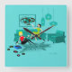 It looks like it’s going to be a fun time with this kitschy Retro Girls’ Night In Acrylic Wall Clock. The 1960’s style, minimalist art design features two women with pink cocktails in a thoroughly mid century modern, aqua and turquoise living room. These ladies certainly know how to relax. The raven haired beauty in the flirty, green dress is lounging on the atomic sofa. Her blonde companion is sitting on a zebra print rug, wearing a red top and tight, black pants. The vintage, vinyl record player and paper lantern light fixtures set the mood. A framed, space age, globe art print hangs above the mod sofa.