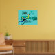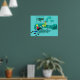 It looks like it’s going to be a fun time with this kitschy Retro Girls’ Night In Poster. The 1960’s style, minimalist art design features two women with pink cocktails in a thoroughly mid century modern, aqua and turquoise living room. These ladies certainly know how to relax. The raven haired beauty in the flirty, green dress is lounging on the atomic sofa. Her blonde companion is sitting on a zebra print rug, wearing a red top and tight, black pants. The vintage, vinyl record player and paper lantern light fixtures set the mood. A framed, space age, globe art print hangs above the mod sofa.
