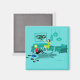 It looks like it’s going to be a fun time with this kitschy Retro Girls’ Night In Square Magnet. The 1960’s style, minimalist art design features two women with pink cocktails in a thoroughly mid century modern, aqua and turquoise living room. These ladies certainly know how to relax. The raven haired beauty in the flirty, green dress is lounging on the atomic sofa. Her blonde companion is sitting on a zebra print rug, wearing a red top and tight, black pants. The vintage, vinyl record player and paper lantern light fixtures set the mood. A framed, space age, globe art print hangs above the mod sofa.