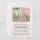 Celebrate in true outdoor adventure style with this retro-inspired camp birthday invitation! Featuring a bold pink sunset over layered mountains, earthy browns and greens, and playful pops of girly pink, this design brings all the nostalgic summer camp vibes with a modern twist.