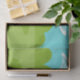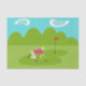 This Retro Golfer Tissue Paper is more fun than a day on the greens. The 1960's style, minimalist art design is anything but par for the course. It features a lone golfer on a lush, green fairway. The mid century modern golfer is making a real fashion statement in his stylish, plaid, golf pants and fuchsia shirt. The blonde, fit, weekend warrior is on his hands and knees attempting to line up a shot. Or maybe he's attempting to give the ball a nudge in the direction of the hole. Does it really matter? At his side, we see a single, golf club. In front of him, is the elusive hole, with a red flag, which is taunting him. The background features a green line of cartoon trees, an aqua sky and two, white, kidney bean shaped clouds. This design is sure to be a hole in one with your favourite golf pro.