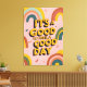 Add a splash of positivity and retro charm to your space with this vibrant wall art. Featuring the uplifting quote, "It's a Good Day to Have a Good Day," in a groovy, 70s-inspired font, this piece is designed to brighten any room. The design showcases bold, yellow 3D-style typography against a soft pink background, surrounded by stylish, muted rainbows. Its vintage colour palette creates a warm, nostalgic feel, making it the perfect inspirational poster for your living room, bedroom, dorm, or office. Let this happy and motivational typography print bring good vibes to your decor.