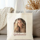 Tote bag with the text "Graduate" in a fun, retro style font with the school name and year below. Add your custom photo.